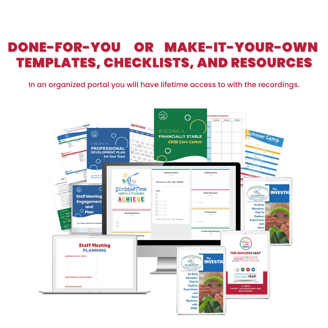 That's why we offer Implementation Mastermind meetings so that you can take some time to process what you learned. Then, come to a mastermind and let's talk through your strategies, solve problems, get ideas, and implement things to improve your center!