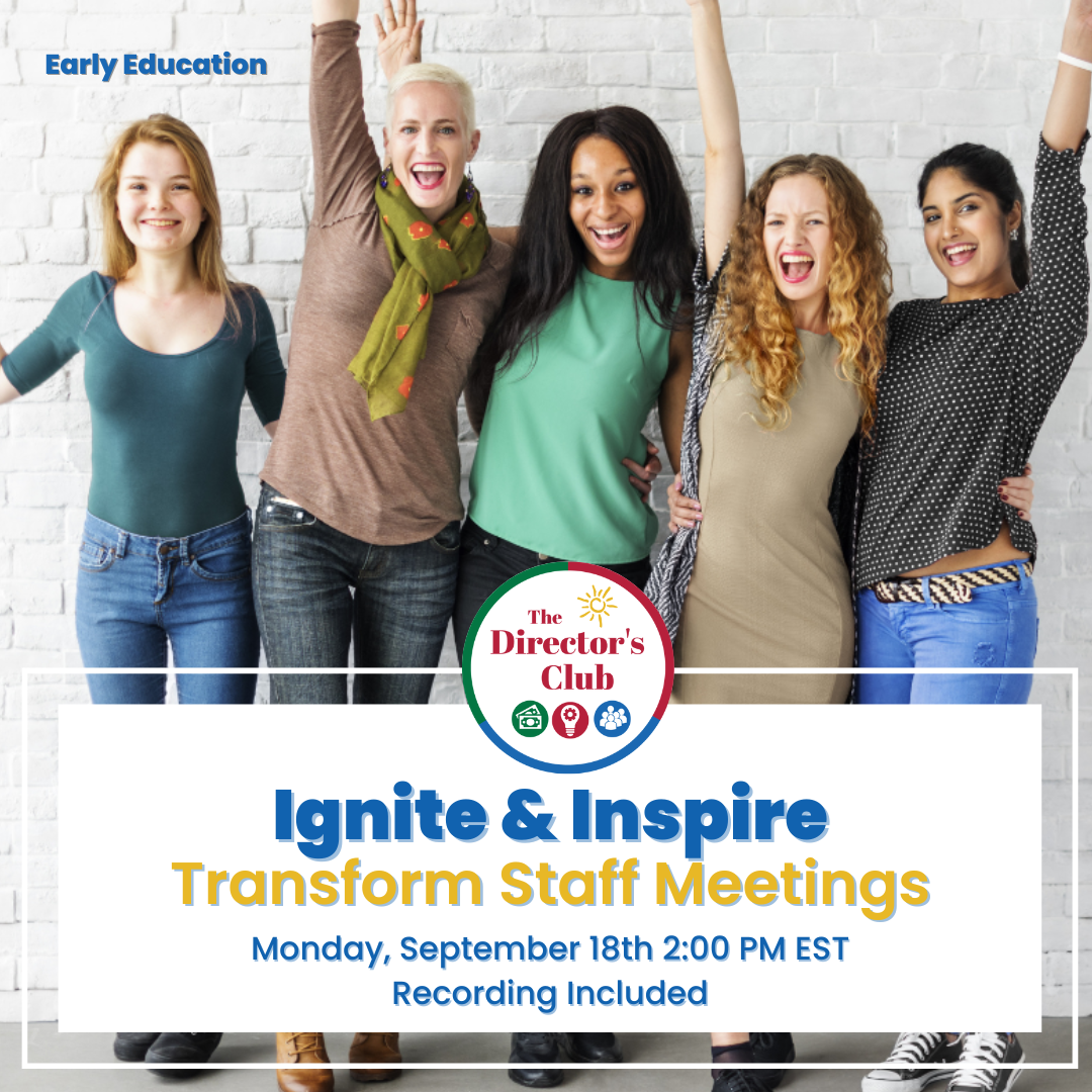 Utilizing our ACHIEVE method for leading a visionary center, we have created a philosophy on developing staff meetings that works. No two staff meetings are ever the same leaving the team excited for what is to come. When you set the stage for teamwork, collaboration, and leadership building amazing conversations happen and translate in the days ahead at your center.